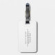 Modern black and white luggage tag featuring a simple and minimal design with your name in an elegant script and contemporary sans serif font. The back has your contact information in a minimalist layout.