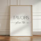 "Favors - please take one" sign with minimalist black and white script design for a modern Bridal Shower.