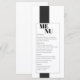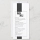 Elevate your wedding dining experience with our Minimal Black and White Wedding Menu design. This chic and timeless menu features a sleek black and white color palette, perfect for modern and elegant wedding themes. The minimalist layout ensures your guests can easily read the menu while adding a sophisticated touch to your table settings. Ideal for black-tie events, monochrome themes, or contemporary celebrations, this design effortlessly combines style and function. Personalize it with your menu details to make your big day unforgettable.