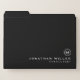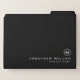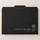 Minimalist monogram design with classic block monogram medallion in a classic font with personalized name and title below on a simple black background. Personalize for your custom use.