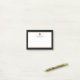 Monogrammed notepad with a minimalist design in a black and white color palette with gold accents. Custom name and title, role or custom text presented on a simple white background, framed by a black border. Personalize using the fields provided or use the 'message' button to contact the designer for help.