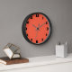 A modern blend of warm persimmon orange with bold black numbers makes this clock a standout piece. Its clean lines and minimalist style make it suitable for kitchens, living rooms, or creative studios. A functional accent that doubles as contemporary art.