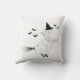 Minimal Black Line Art Of Witch And Bats Halloween Throw Pillow