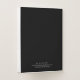 Modern and professional black pocket folder featuring a simple and minimal design with your name in an elegant script and contemporary sans serif font. The back has your contact info. These minimalist style pocket folders are great for using as presentation folders.
