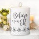 Minimal, Black & White Believe In Your Elf Pillar Candle