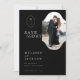 A timeless, classic, and elegant wedding save-the-date card with a modern minimal aesthetic in classic black and white. Simple elegant monogram crest with simple typography arranged in a modern layout. The photo is displayed in a unique photo frame to match the couple's monogram crest. **All colors can be changed to suit your wedding color preference. Check out our other matching wedding items for this collection.
