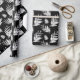 Minimal, modern monochrome festive holiday leaf foliage pattern design wrapping paper. Our modern black and white pattern wrapping paper is perfect for a stylish, modern, and non-traditional look. Wrapping paper features our hand-drawn rustic simple silhouette of cedar leaf foliage and pinecones arranged in a modern bold pattern print for a bold look. Artwork and pattern design hand-drawn by Moodthology Papery.