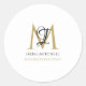 Minimal Black White Gold Monogram Name Classic Round Sticker