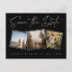Minimal Black White Photo Collage Wedding Save the Date. Elegant and modern, this black and white photo collage Save the Date postcard features three custom images and clean script typography. Ideal for chic or formal weddings with a minimal design aesthetic. A timeless look for stylish couples.