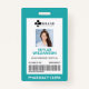 A simple minimal teal border frame design perfect for medical, healthcare, emergency department, etc. The badge ID information, logo, photo ID, ID number and optional barcode are neatly designed within the middle white frame with the job title displayed along the bottom of the badge. The reverse side features the same design with an address and logo.