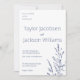 This is a modern and simple design in slate blue and white. This clean design is classy and timeless. The grasses accenting this invitation give it a coastal or prairie vibe that results in a very elegant aesthetic. Matching and coordinating items available in my store to give you event a curated look.