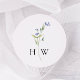 Romantic floral wedding sticker, featuring delicate watercolor blue flower stem and an elegant monogram. The soft botanical design frames the couple’s initials beautifully, creating a timeless and sophisticated look. Perfect for garden weddings, spring celebrations, or any event with a floral or rustic theme.