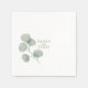 Customize the napkins with your names, initials, or wedding date to create a meaningful detail guests will notice throughout the event. The balanced layout keeps the focus on the couple’s names while the soft eucalyptus illustration adds a graceful finishing touch.