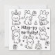 Featuring a group of hand-drawn bunnies celebrating with balloons, cupcakes, and gifts, this sweet line-art design brings a soft, minimalist charm to any birthday occasion.