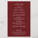 Modern burgundy wedding program featuring a simple and minimal design with the bride's name in an elegant script and the groom's name in a contemporary sans serif font. Below in the lower right corner are your event details and order of ceremony in a minimalist layout. The back has your wedding party and thank you message.
