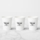 Minimal business logo simple charcoal black typography and white branded coffee paper cups. Customize with your company's logo and add your own personalized text. Text font and color can easily be changed in the design editor to match your branding colors.
