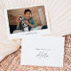 This minimal calligraphy hello baby announcement card is perfect for a simple pregnancy announcement. The design features a beautiful font in a white background to embellish your event.