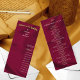 Your wedding ceremony isn’t just a moment—it’s a whole mood, and this Burgundy Wedding Program Card is here to guide guests through it with sass, class, and a gold-foiled wink. Draped in silk-satin texture with rich burgundy undertones and radiant golden accents, it turns your event lineup into a scroll-worthy, keepsake-worthy highlight reel. Think of it as your stylish master of ceremonies—minus the microphone. From “Here Comes the Bride” to “Time to Toast & Twirl,” this card lays out each step of your celebration with clarity and charm.