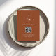 Flip the card to reveal a stunning creamy backdrop. A smaller scale version of the leaf monogram graces the black space, accompanied by the bride and groom's names in a complementary font.