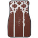 A minimalist, gothic window illustration set of car mats in terracotta or brick red. Perfect for the lovers of history, architecture, and travel. Simply personalize it with your name and initial.