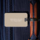 Modern luggage tag design features a beige background, with your monogram initial and name in white a simple stylish professional look.