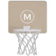 Modern mini basketball hoop with classic block typography initial in white on beige background. Personalize with name and initial.