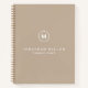 Modern notebook features a minimal design in beige and white. Custom name and title centered in a presented in a stylish simple font with a complimentary minimal monogram medallion. Personalize with your monogram initial, name, profession or custom text using the customize menu. Ideal for consultants, attorneys, real estate agents, corporate or executive coaches, or any other business professional, or a thoughtful office gift for him or her.