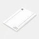 Write down notes and messages on this personalized post-it notepad in a no nonsense clean design with gray lines and your initial and name in black. The perfect notepad for the man in your life who wants a personalized minimalist look in black and gray against a white background.
