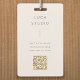 A minimalist vertical design in a simple style with a gold feature color & QR code. The text & QR code link can easily be customized for a design as unique as your small business!