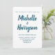 The minimalist wedding invitations combine elegant calligraphy with a blue and white color scheme. Personalize the wedding invites with your wedding details.