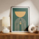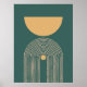 A minimal abstract art with a mid century geometric design in mustard and teal. A perfect home accessory for a minimalist.