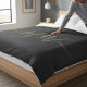 Elegant modern script with swashes for the monogram of this duvet. Black and a hue of gold. Simple, minimal design, a beautiful addition to your master bedroom bedding.