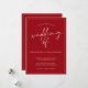 Minimal Crimson Red Script Wedding Invitation. Stylishly impress your wedding guests with this trendy crimson red wedding invitation featuring a beautiful white script on a stunning red background. This Invitation has a stunning crimson red design, with modern and minimal vibes, perfect for your simple, trendy, minimalist wedding.