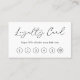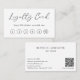 Modern black and white typographic loyalty card featuring a simple and minimal design with "loyalty card" in an elegant script typography along with a heart in the last punch. The back has your contact info and optional QR Code. You may remove the QR Code and change the colors of the fonts and background in the design editing tool.