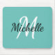 Minimal Cute Light Blue Monogram Initial + Name Mouse Pad