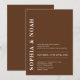 Plain white envelopes are included with paper invitations and will come to fit the invitation size you select. If you don’t need the envelopes, you may choose to not receive them by selecting the dropdown below "Envelopes" and choosing "None." If you’d like to have a design on your envelopes, you can browse all of these available envelopes to find the design that complements your Minimal Elegant Dark Brown Modern Wedding Invitation.