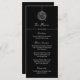 These trendy yet elegant, dark black wedding menu cards feature a modern and minimalist style, with white handwritten script and classic text. A retro hand-drawn disco ball is featured in a whimsical illustration.