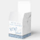 Modern light blue glitter and gray marble custom-printed favor box for a chic baby shower or bridal shower features the trendy dusty blue periwinkle color glitter pattern in a stripe on the bottom.