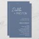 Modern dusty blue wedding program featuring a simple and minimal design with the bride's name in an elegant script and the groom's name in a contemporary sans serif font. Below in the lower right corner are your event details and order of ceremony in a minimalist layout. The back has your wedding party and thank you message.