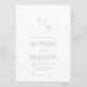 Elevate your wedding suite with this elegant dusty blue invitation featuring a refined monogram and minimalist fine-art typography. The clean layout, soft blue accents, and matching floral backer create a timeless and sophisticated look perfect for modern, romantic, and classic weddings.