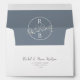 Simple, modern, contemporary, elegant, unique minimal dusty blue 5x7 envelope for wedding invitation with monogram inside, return address and trendy hand-lettered script.