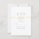 Simple, minimalist, modern, white and dusty blue wedding RSVP card with gold rope heart and trendy handwritten script.