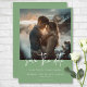 This wedding save the date card design features a dusty sage green background and is the perfect canvas for your favorite couple photo. The simple details appear in white text. The back features the couple's first names. Unique and elegant, this design can be used for any season. Created by Simply Farmhouse Press.