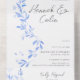 Elements: an elegant vine of in the style of vintage porcelain painting. Names appear in a modern script; other details in classic serif fonts Colors: blue, porcelain blue, delft blue, french blue, grey. Themes: elegant, modern, minimalist, garden, subtle, light, airy, timeless, vintage. Collection: Minimal Elegant Porcelain Floral Chinoiserie Wedding Collection Product Type: All-In-One Wedding Invitations