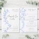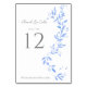 Elements: an elegant vine of in the style of vintage porcelain painting. Names appear in a modern script; other details in classic serif fonts Colors: blue, porcelain blue, delft blue, french blue, grey. Themes: elegant, modern, minimalist, garden, subtle, light, airy, timeless, vintage. Collection: Minimal Elegant Porcelain Floral Chinoiserie Wedding Collection Product Type: Table Card