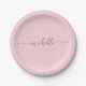 Minimal Elegant Gold Monogram Script Blush Pink Paper Plates