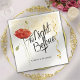 Get Youself Some elegant and beautiful Decorated napkins for your Rehearsal Dinner. The napkins come in a calligraphy modern style with ~THE NIGHT BEFORE~ font. Also, you can customize the name of the bride and the groom. The napkins feature glitter with red Poppy Flower and confetti to make them look so beautiful and elegant.
