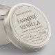 Minimalist translucent round product label design, featuring a professional layout with elegant calligraphy script and serif fonts printed on clear waterproof vinyl stickers. This fully editable candle sticker is great to use for your jars or as a tin lid label, simple, yet timeless design that is sure to impress - can be used for candles, cosmetics, fragrance and more!