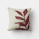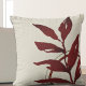 Stylish throw pillow features a simple artistic botanical design in a cream and burgundy color palette with faint gold accents. An artistic layered design features a watercolor leaf and a geometric circle composition with shades of burgundy on a creamy ivory background. This elegant designer composition is built on combinations of watercolor leaves and circles, which are overlapped with faint geometric design elements. The burgundy red and golden accents compliment the cream background.