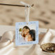 Celebrate where your forever began with this elegant and timeless wedding keepsake. This beautiful, minimal, and modern photo ornament features one cherished photo on the front and another on the back — a perfect way to capture your most unforgettable moments from your destination wedding or honeymoon. Personalize with your names, wedding or honeymoon date, location, coordinates, and a custom monogram to create a one-of-a-kind keepsake that tells your love story. Perfect for newlyweds, travel lovers, or couples celebrating their first Christmas together, this ornament is a heartfelt reminder of your most meaningful journey — the beginning of forever. Design by © Moodthology Papery.